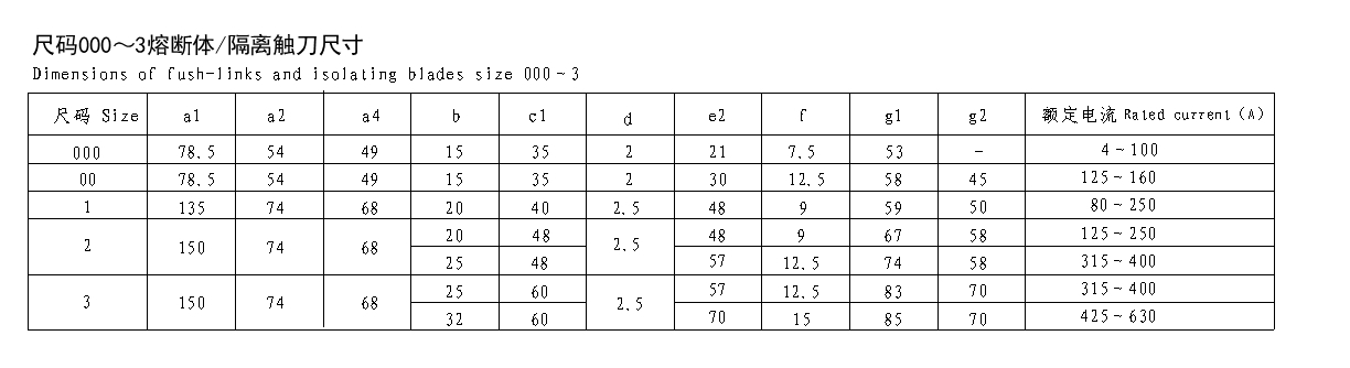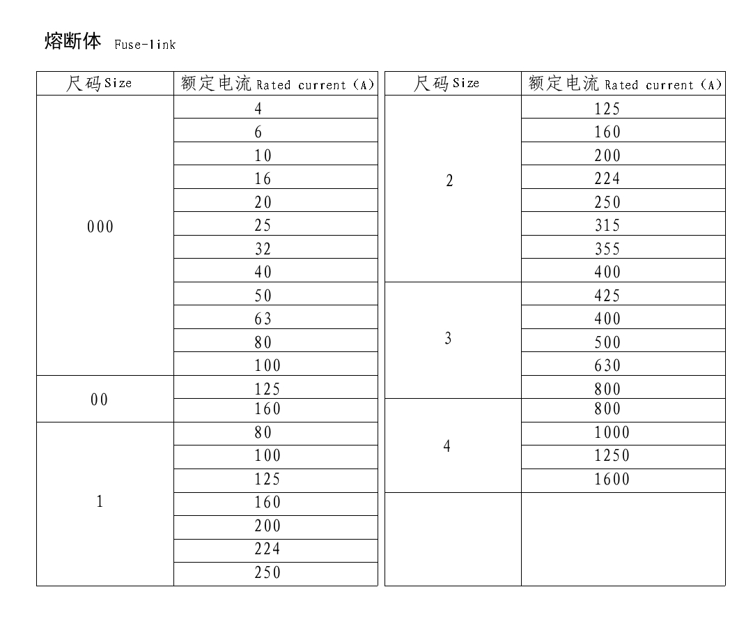 本系列熔斷器能與國外符合IEC、DIN標準的同類熔斷器完全互換。