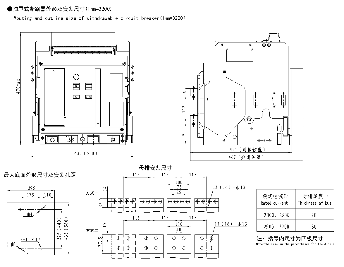 This circuit breaker is suitable used in the distribution network with rated operational voltage 400V, rated working current 630A~3200A,AC 50Hz. for distributing power and protecting line and power supply facility from damage of many faults such as overload, under voltage, short circuit, single-phase earthing etc., it possess many advantages of intelligent protection functions, precise discrimination protection to provide reliable power supply and avoid unnecessary power cut.